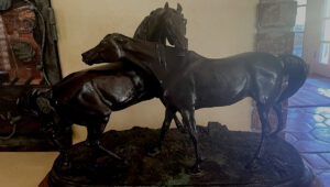 The Pierre Jules Mene sculpture ‘L ‘accolade,” owned by B and J D is valued at $5,000.
