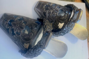 PS, your stirrups aren’t sterling at all. Sterling contains a great deal of pure silver. Your South American stirrups are made of Brazilian Britannica Metal, not containing much silver content at all, in the style of Conquistador Stirrups from the third quarter 19th century, made for a lady rider with flouncy gowns to match these stirrups.