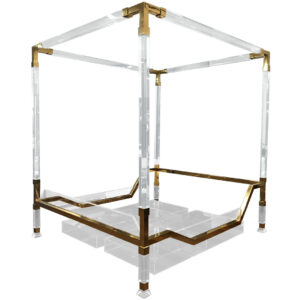 In the 2020s, Lucite, in all it’s over the top “invisibility” isn’t only hard to find but vintage Lucite is expensive. That Charles Hollis Jones brass and Lucite “Metric” king-sized poster bed from 1971 now costs $50,000. You will pay more, however, for the four-poster designed and manufactured by Hollis Jones for Sylvester Stallone in 1976. In fact it’s for sale today. Stallone requested the ceiling of the bed between the four-posts have a mirror, however, the mirror is now missing. It’s hard not to wonder what that mirror reflected.